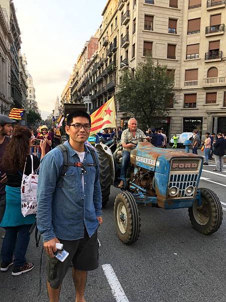 見到有人發傳單,就順勢拿了一張融入其中,當我們拿著標語拍照,一旁的大叔還伸手比讚,融入加泰隆尼亞大型的遊行活動就成了我們這次旅程最難忘的體驗。