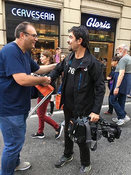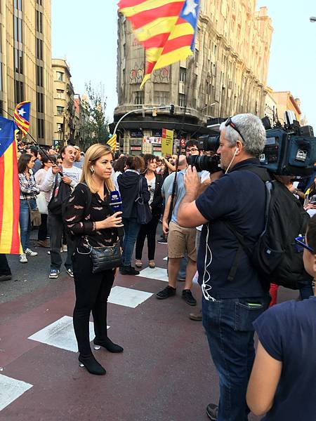 到了10/27(五)是我們準備離開巴塞隆納的最後一天,正好我們沒有選擇去逛街,反而在街上一些走過的點亂晃,意外走到整個慶祝活動的核心位置「市政廳」,看到一堆媒體還有亮麗的記者。