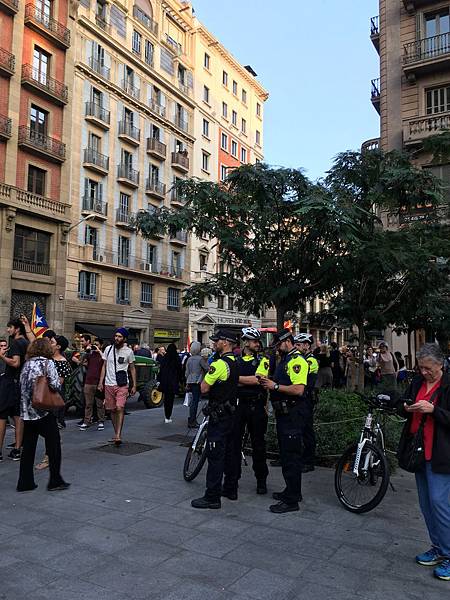 連警車開過,裏面的警察也伸手出來比個讚,這是加泰隆尼亞的警察無誤,哈哈,是說如果西班牙警察混入,這時候說什麼也不能表態。