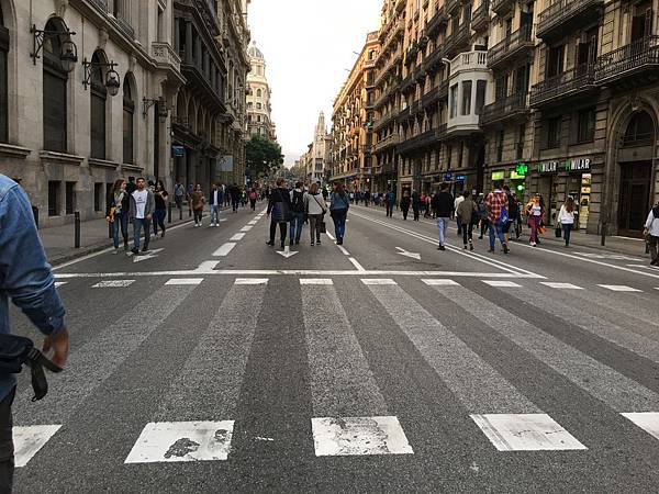 整個擴展區上的"格拉西亞大道(Passeig de Gracia)"街道塞滿滿滿的人潮,才在葡萄牙被扒走錢包的我們,雖然一方面融入群眾,一方面警戒心很重,小心守護剩下的盤纏,事實證明大家真的都是來遊行的,你們都是好人。![]()