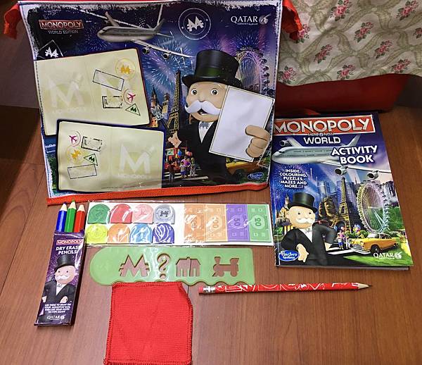 喂~才不是這樣咧,約莫起飛前空姐就會背著一個籃子分送給小朋友,我都會很禮貌的詢問能不能要一份給家裏的小朋友,但內心抱著沒有就算了的心態,畢竟數量有限,還是要以現場小朋友為主,不過很幸運,HKG/DOH去、回程都有拿到不同的兒童禮)